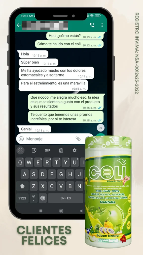 No permitas que el estreñimiento y los problemas digestivos limiten tu bienestar. ColiPlus, con su sabor agradable a manzana verde y su presentación práctica de 450 gramos, es tu aliado perfecto para lograr el equilibrio digestivo que mereces.